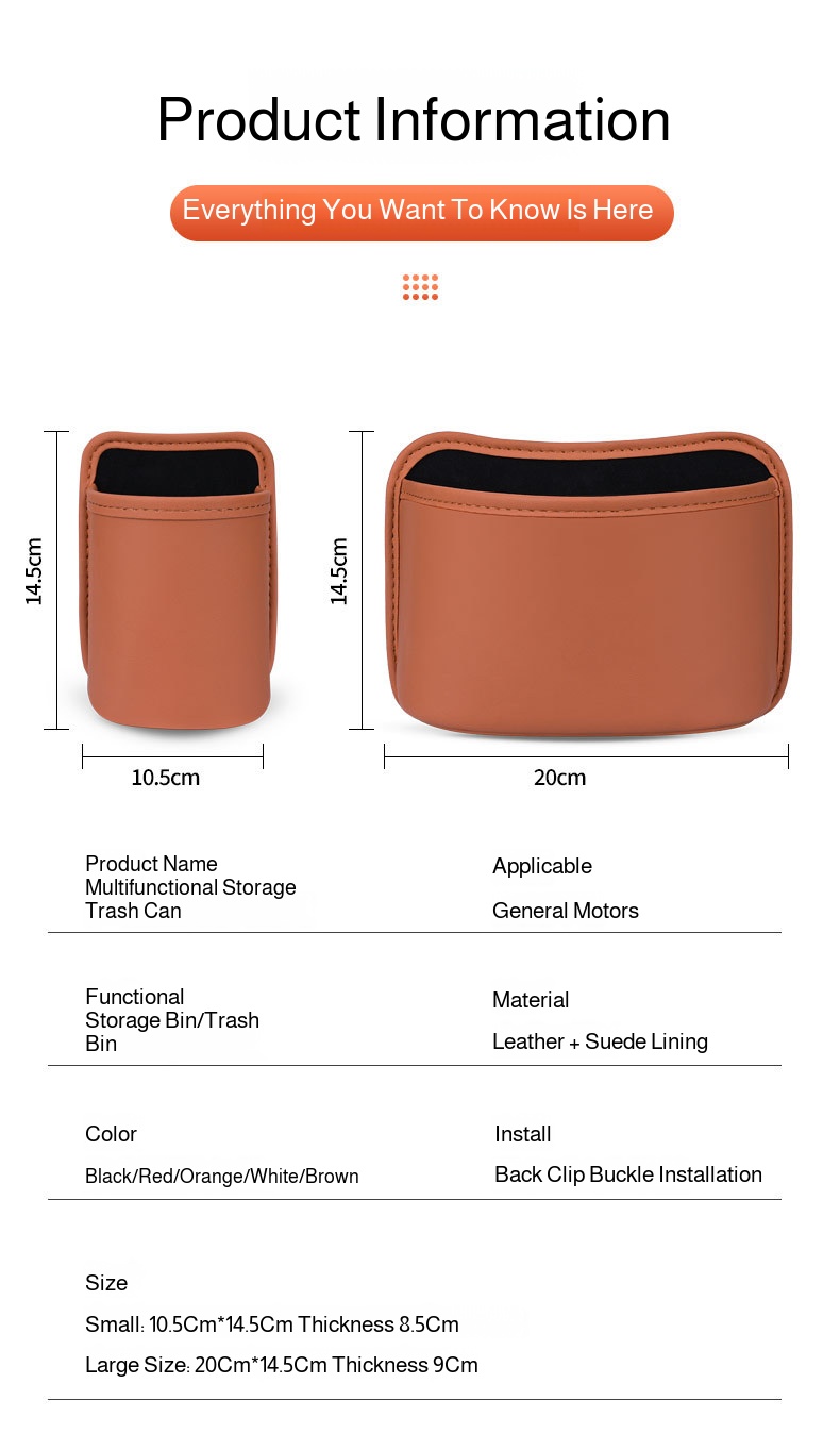 ● Keep your car tidy and organized with this multifunctional storage box and trash bin, designed to hang conveniently on the seat for easy access.