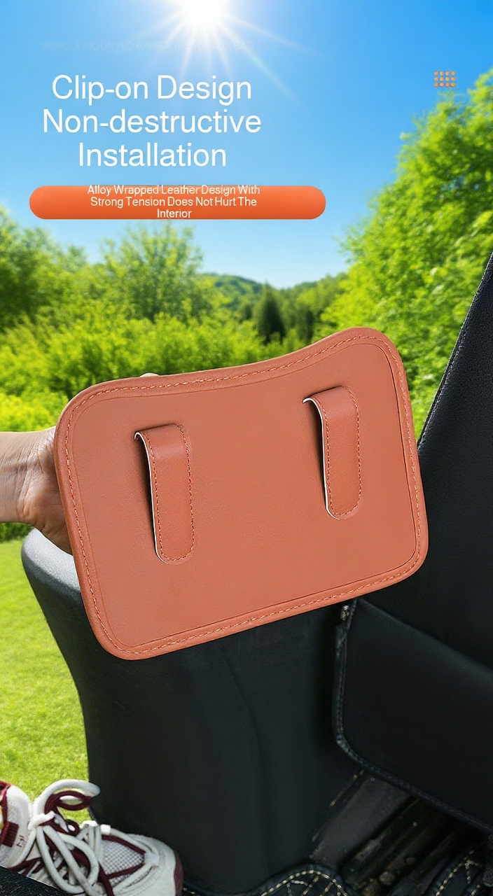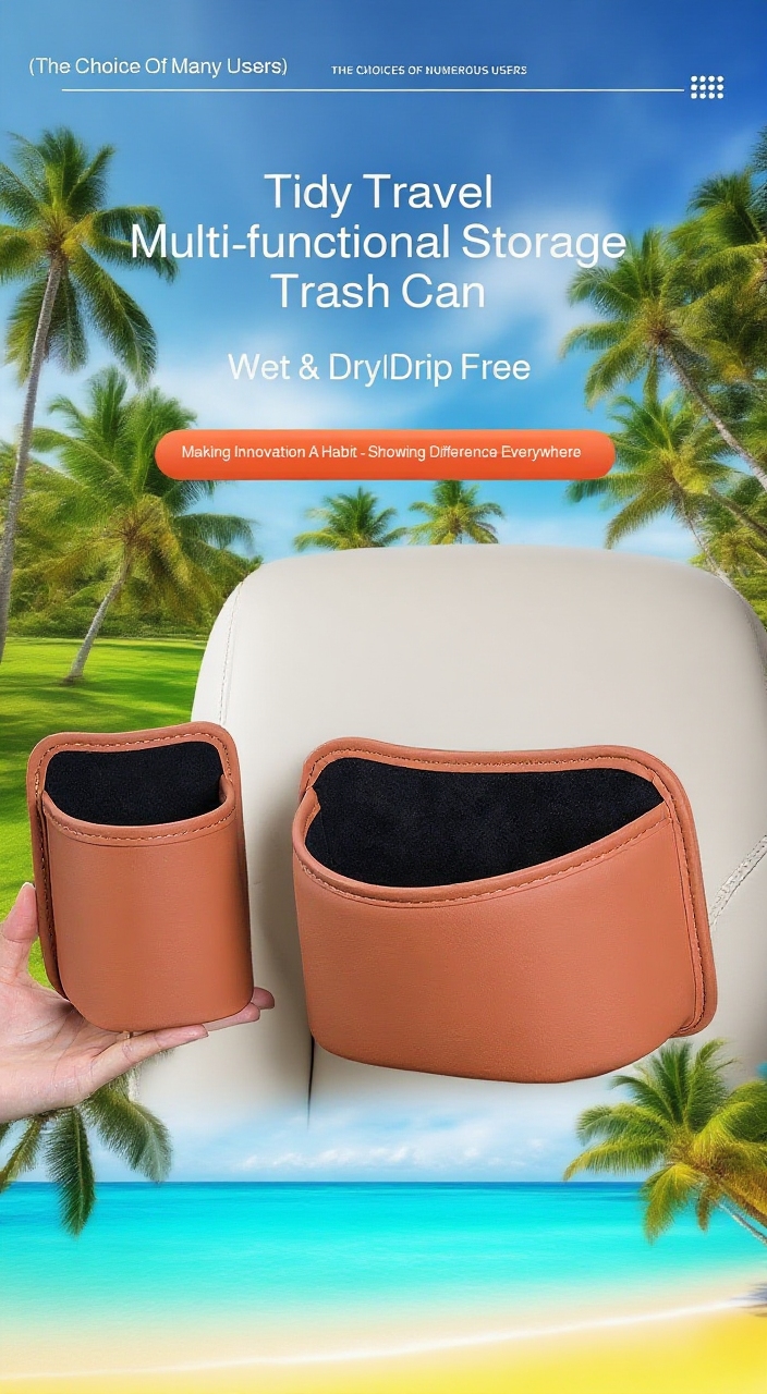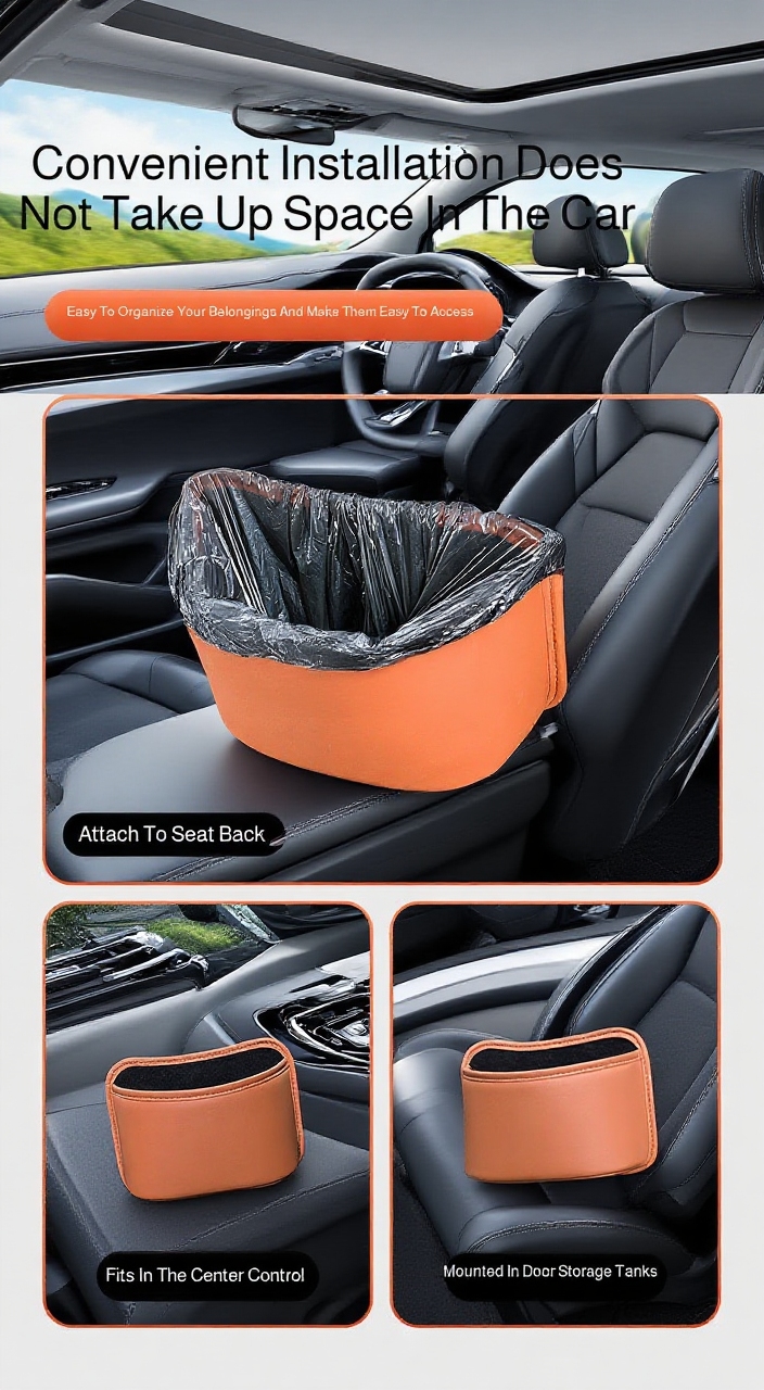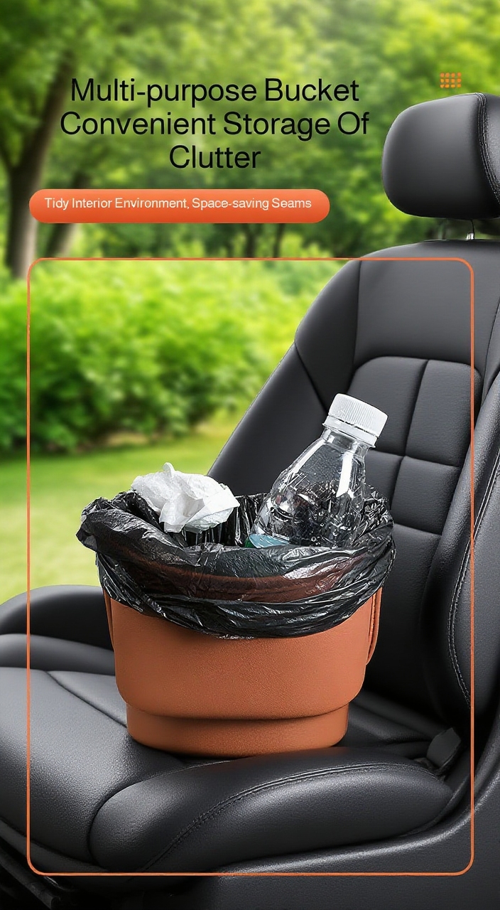 ● Features multiple compartments for storing essentials like tissues, drinks, and gadgets, while also providing a dedicated space for trash disposal.